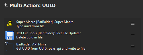 The new Multi Action will type the last generated UUID, clear the .txt file, and then get a new UUID and write it to the file for the next time the button is pushed.